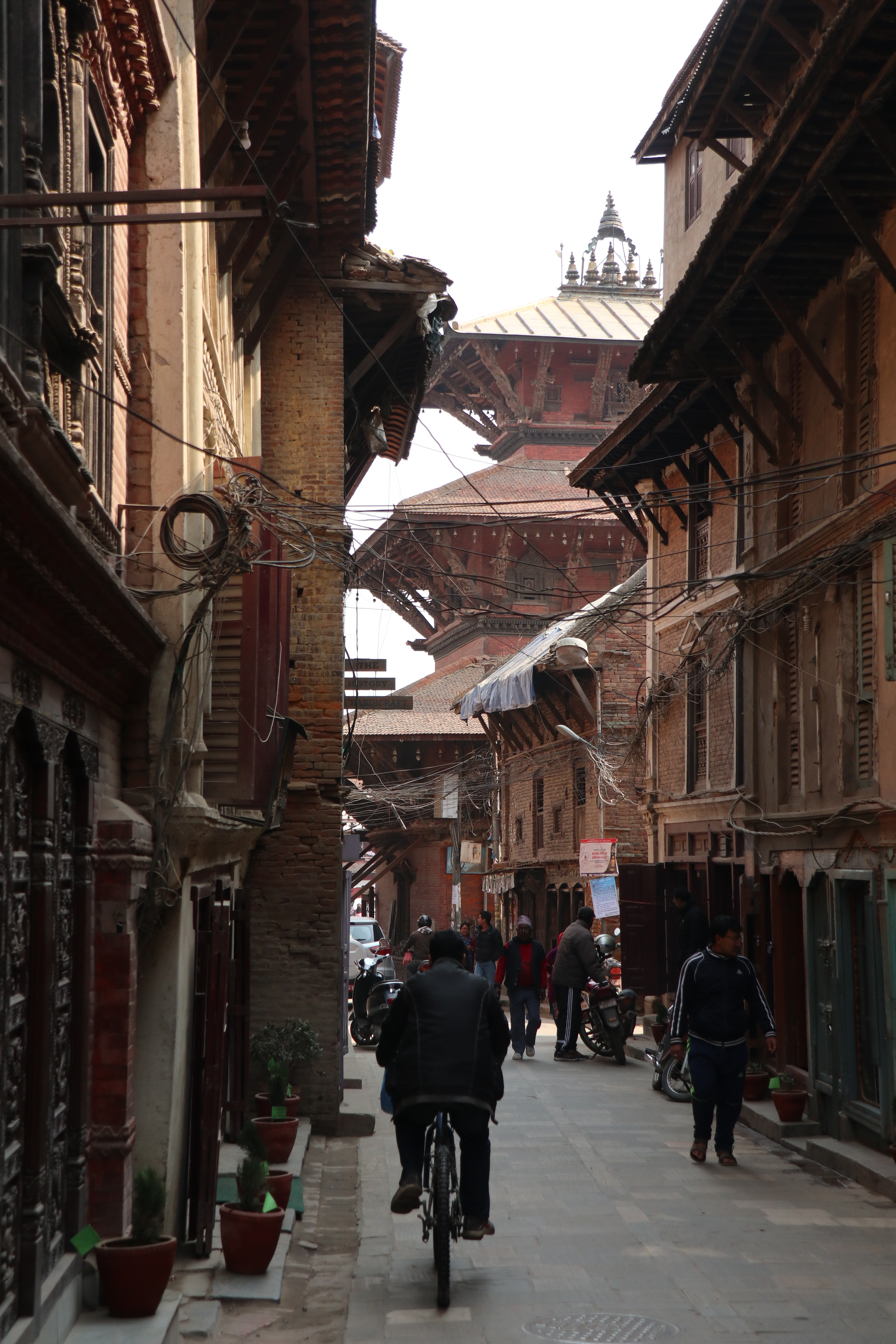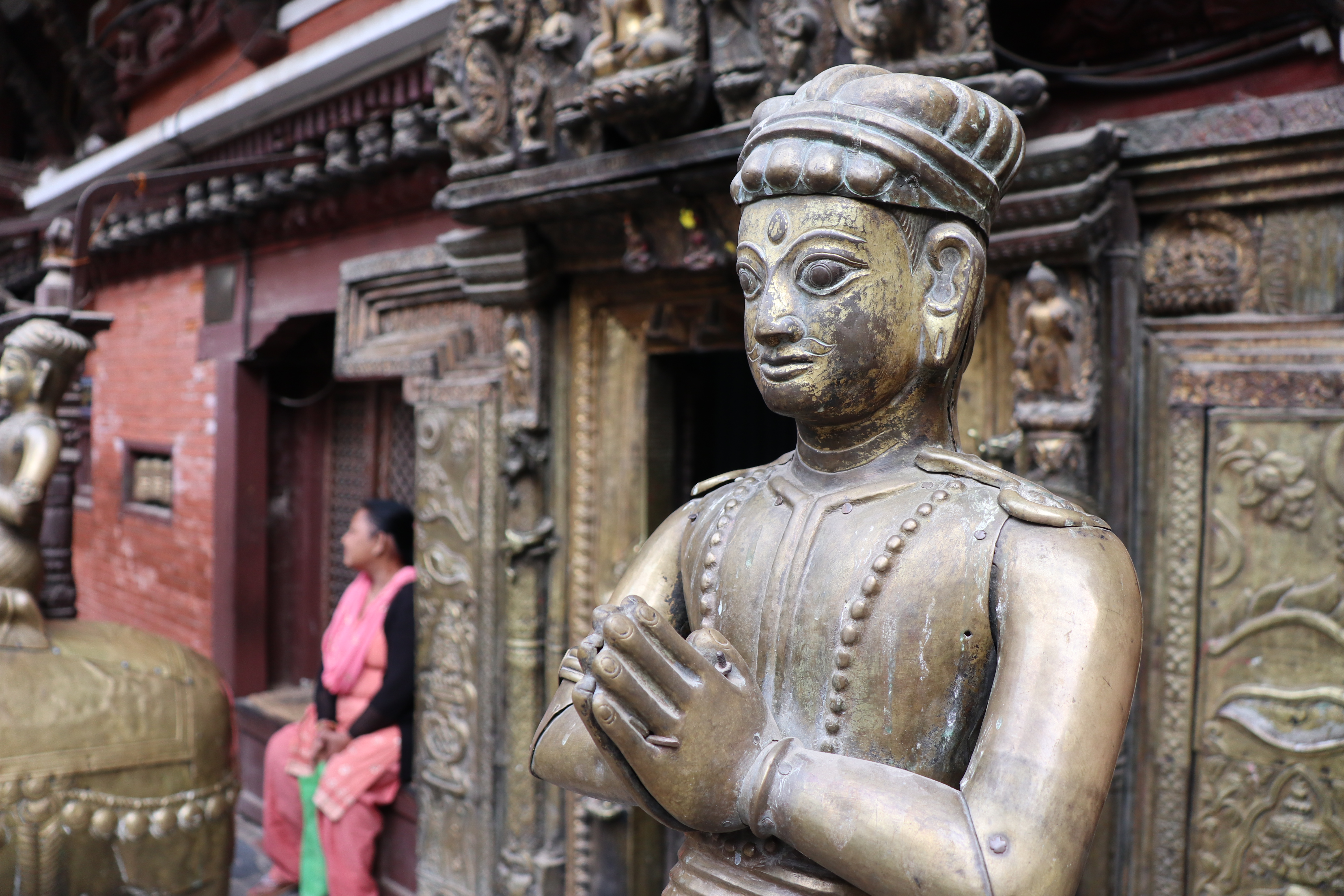 To the south of Kathmandu, across the river, lies Patan. It is another city, and it can be reached in around 30 minutes by car. I don’t really know what to expect to pay for a taxi, so I google it and I read that one should haggle with the taxi driver and pay no more than 300 rupees. I walk through the streets of Thamel and find a road that traffic can pass along. I’m a little meek to approach the first taxi lined up on the street, so I walk along and eventually flag a taxi down. The driver is young – he tells me he is a student and is making some money while he is on a break from university – and he demands 600 rupees. Eye roll. I try as hard as I can to get him down to 300 rupees but he won’t budge from 500. I acquiesce – after all, he’s young and he needs the money and I’m arguing over 200 rupees (or $2) at the end of the day.