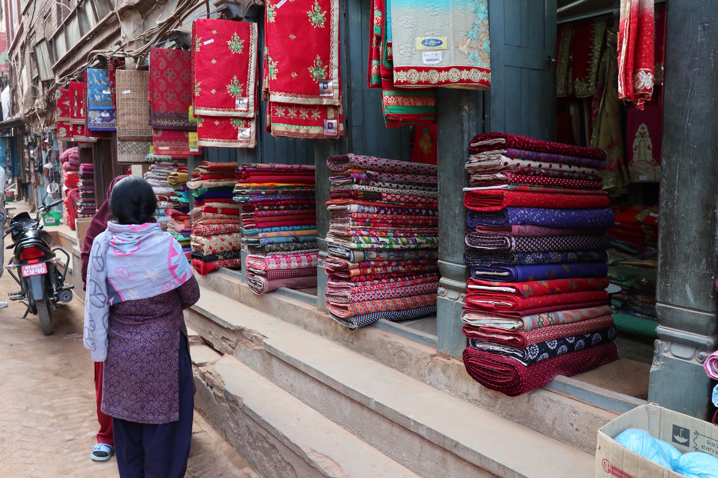 I wander around the square, perusing the art and trinkets for sale, then I walk along a street to the east of the square lined with shops selling all manner of items, from fruit and veg to Indian sweets to T-shirts and shoes and slippers. I’m getting my bearings and taking it all in. It’s very different to Kathmandu, and that’s probably because it’s a smaller town and doesn’t seem to have suffered a lot of damage, even though the streets are still dusty and the roads pitted and broken. The Newari architecture is more prominent here, what with the carved wooden roofs and embellishments to the houses.