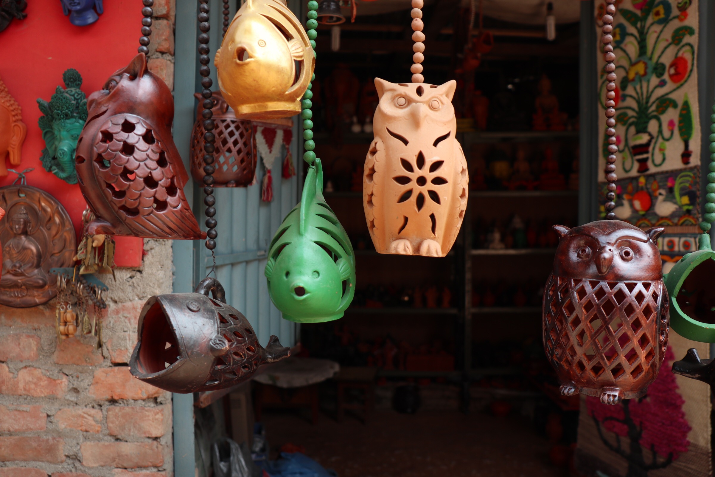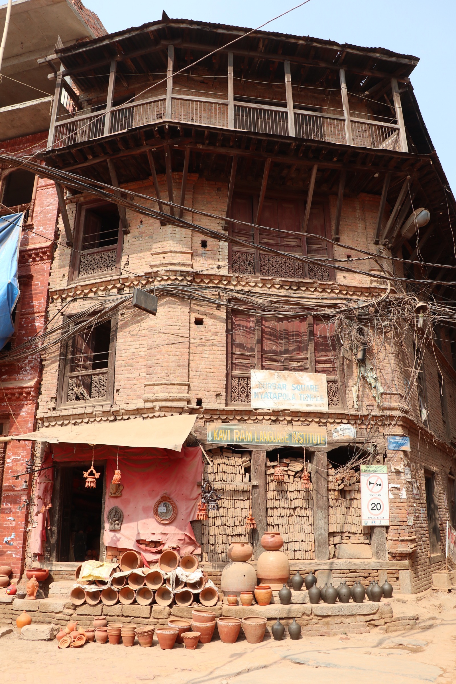 Pottery Square isn’t that big, it turns out. But then again, neither is Bhakatapur as a whole. Out in the middle of the square there are clay pots drying in the sun, and there are several shops selling ceramic and pottery items like owls, pots and other decorations. I was hoping to see potters’ wheels spinning and kilns blasting away, but I only see one small occasion of this when I bumble down a tiny alley between two buildings. Still, it’s an enjoyable site, and I try to get some pictures, of course. As it’s lunchtime, I head to the rooftop of a cafe I have read about and spend a pleasant hour sitting in the sun watching the comings and goings around the square over a plate of fried buffalo mo:mo.