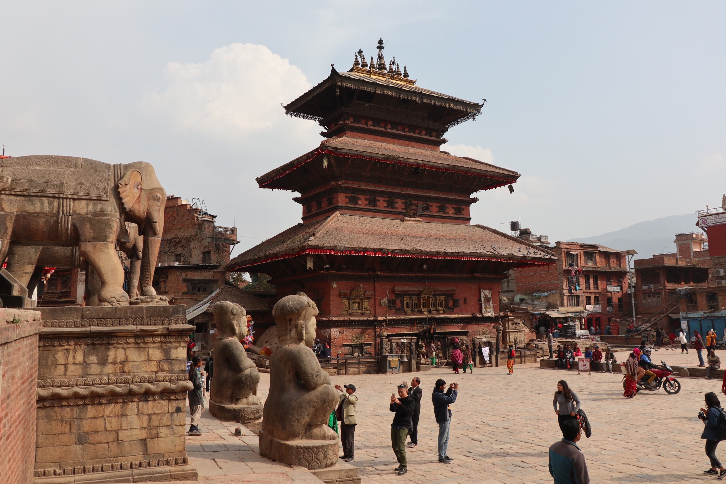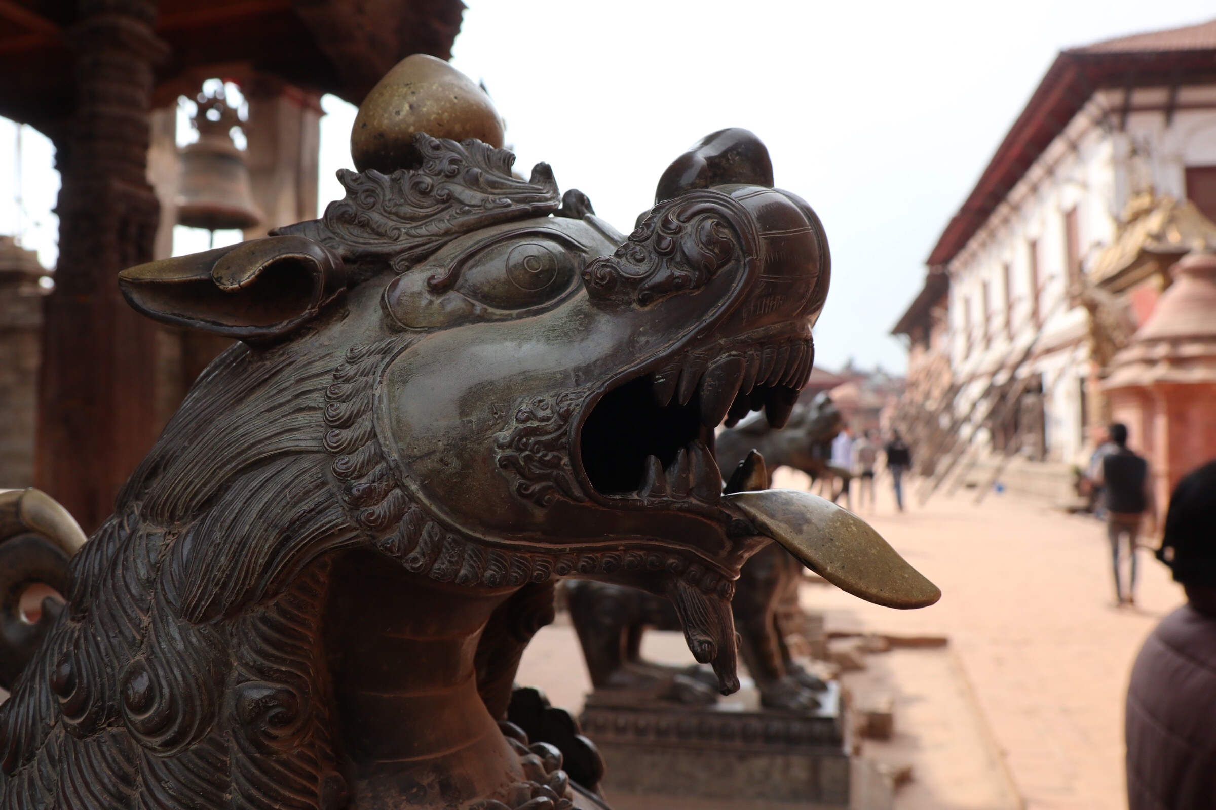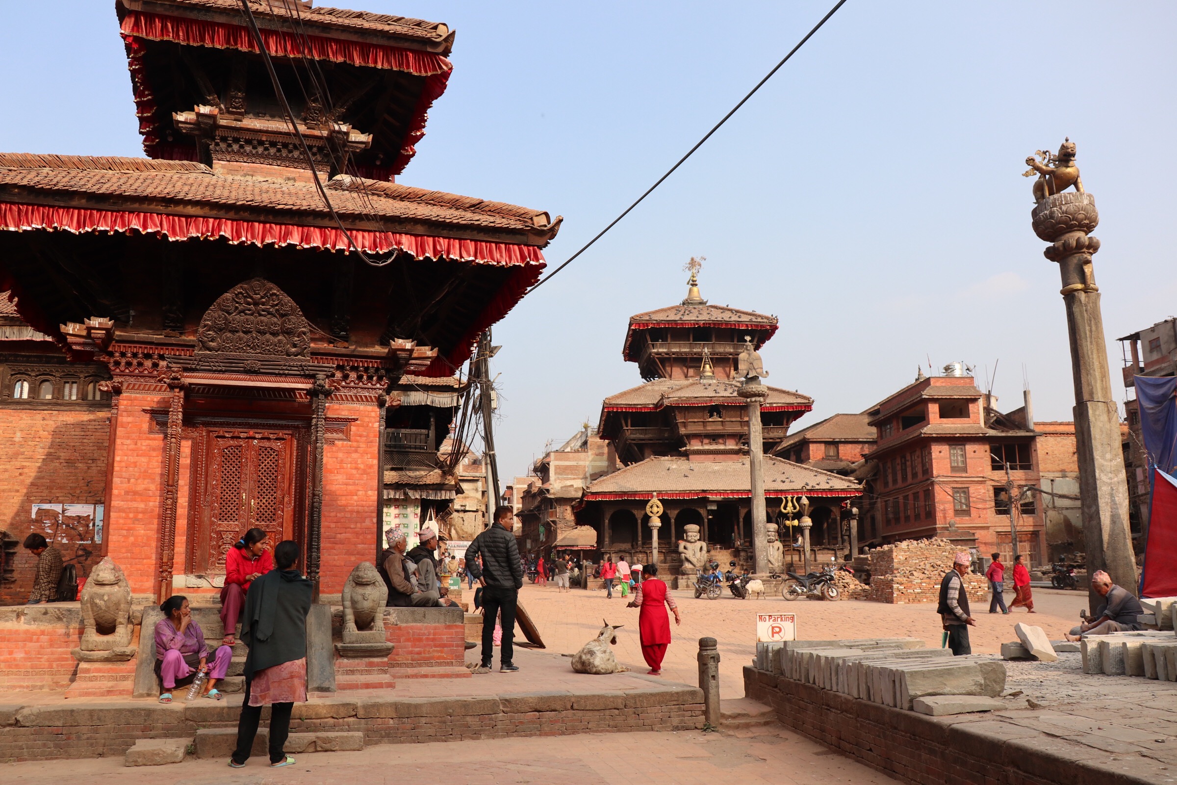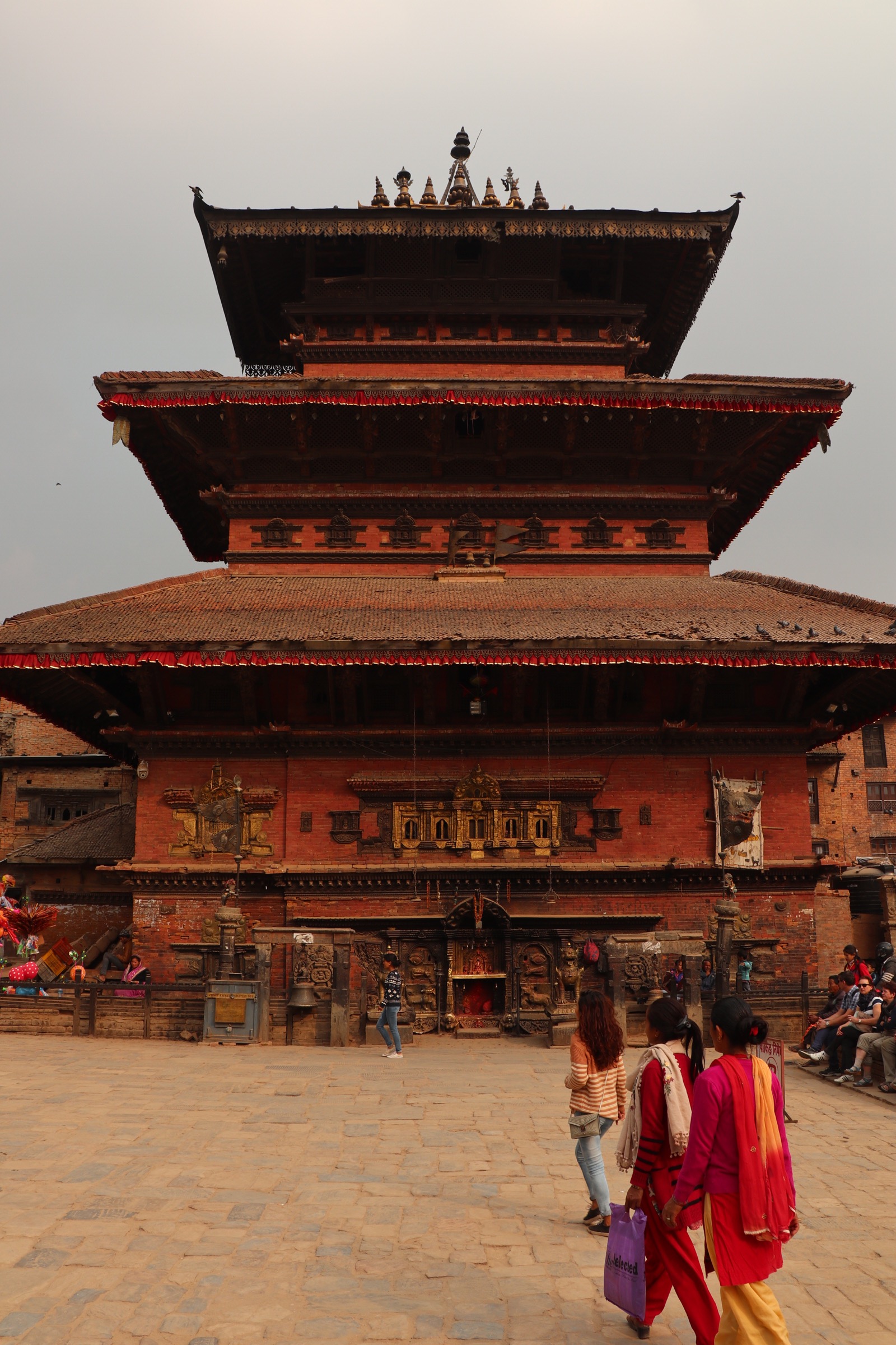 The last destination, of course, is now Durbar Square. It’s just a few minutes’ walk from Pottery Square, since Bhaktapur really isn’t that big. Of the three main squares, it is the one that had been hit the hardest by the earthquake, and restoration work is still ongoing as I wander around. I’m plagued by tour guides again as I enter, and I spend most of my time hiding from one insistent chap who wants me to come to his painting school. The Kama Sutra-esque Newari carvings on the roof of one temple are an interesting diversion, admittedly, but I don’t feel that I really spend enough time enjoying the square or learning about it.