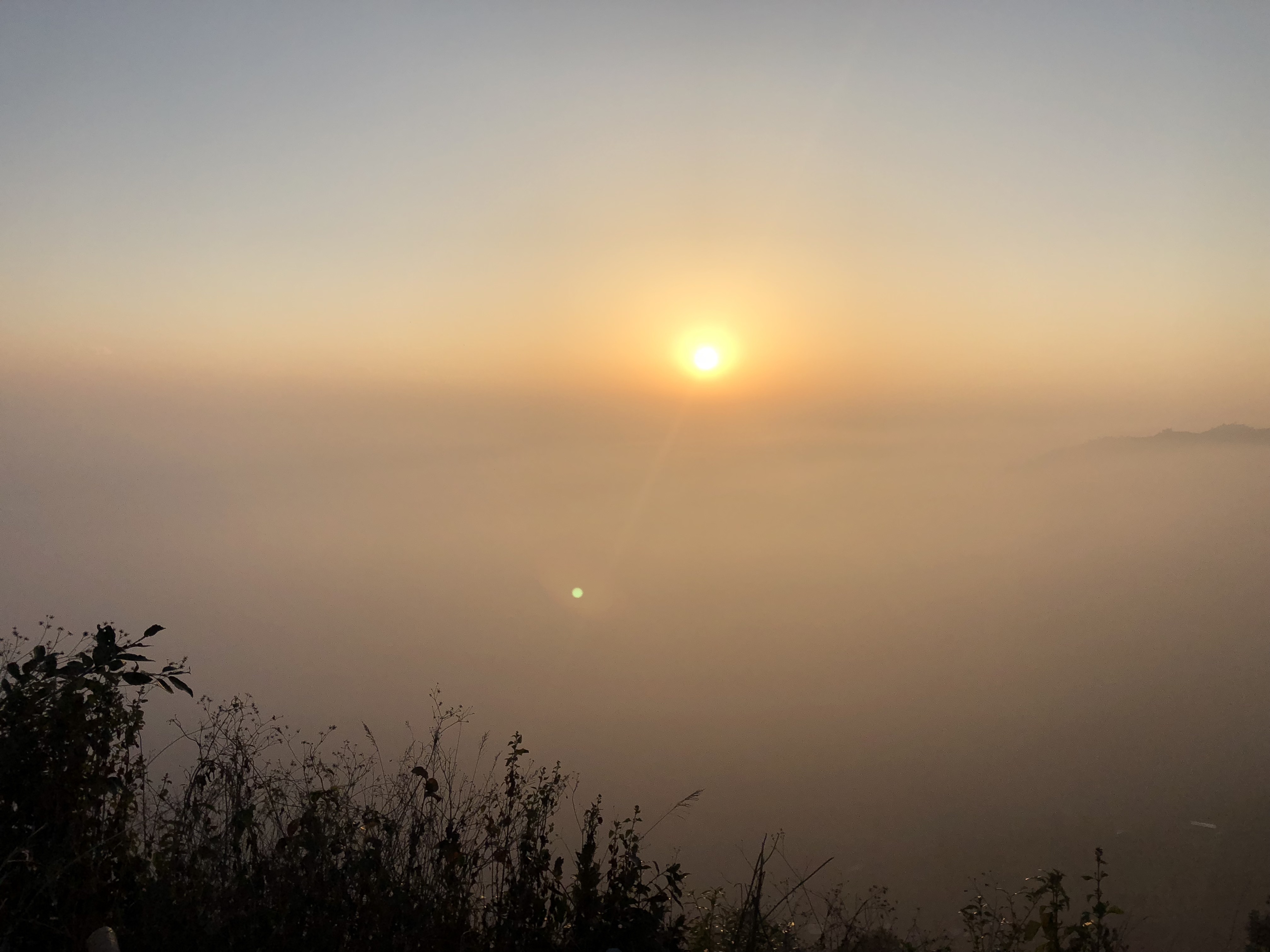 It’s freezing when my alarm goes off at 4.30 a.m. Due to its elevation (2,200 metres above sea level), Nagarkot is cold. I’ve only a threadbare duvet cover on the bed and the tip of my nose is freezing. I can see my breath in the air as I arise from my slumber and go out to the back patio to meet Govinda for my promised cup of coffee.